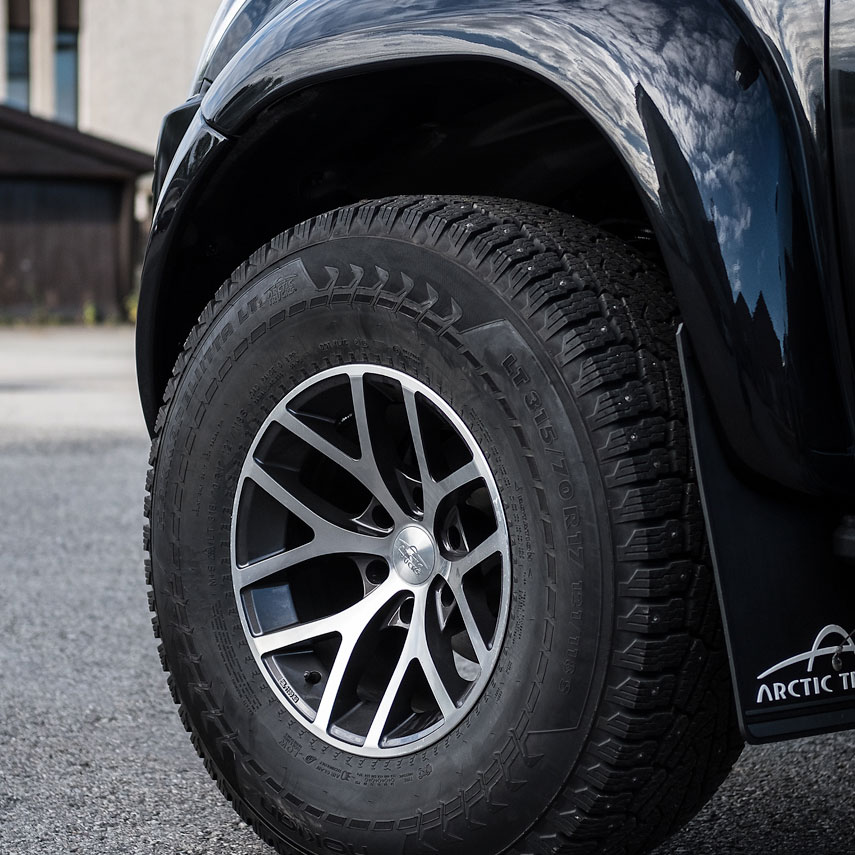 Nokian har sammen med Arctic Trucks laget 35 tommers dekk, eller 315/70 R17 som det faktisk heter i Europa. Dette dekket passer perfekt til våre ombyggninger og gir det et fullverdig 35″ pigget vinterdekk med Nokians kjente vintergrep.