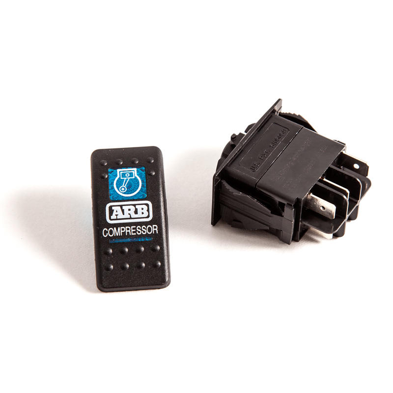 Originale ARB brytere med teksten ”Compressor” til fastmontering i dashbord.