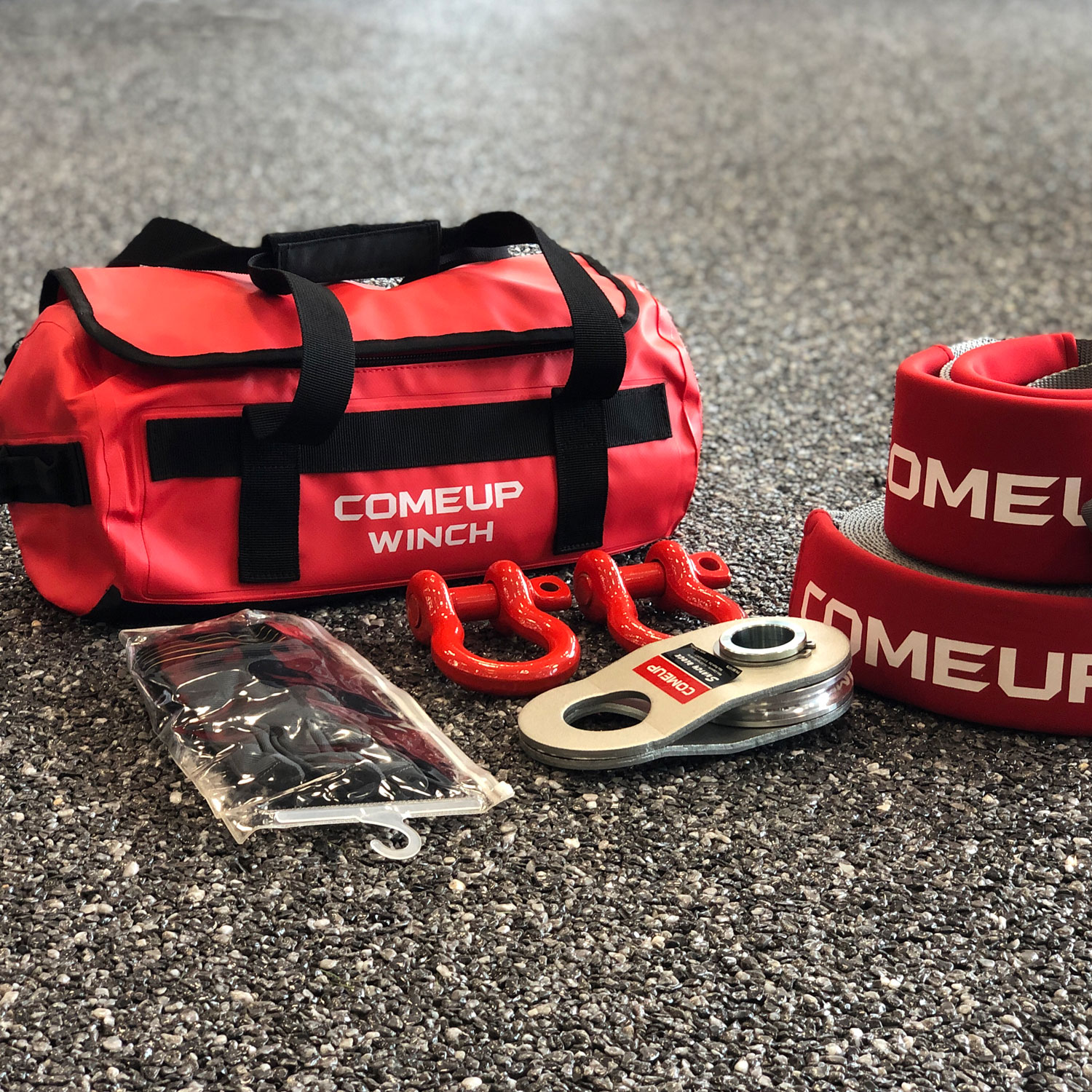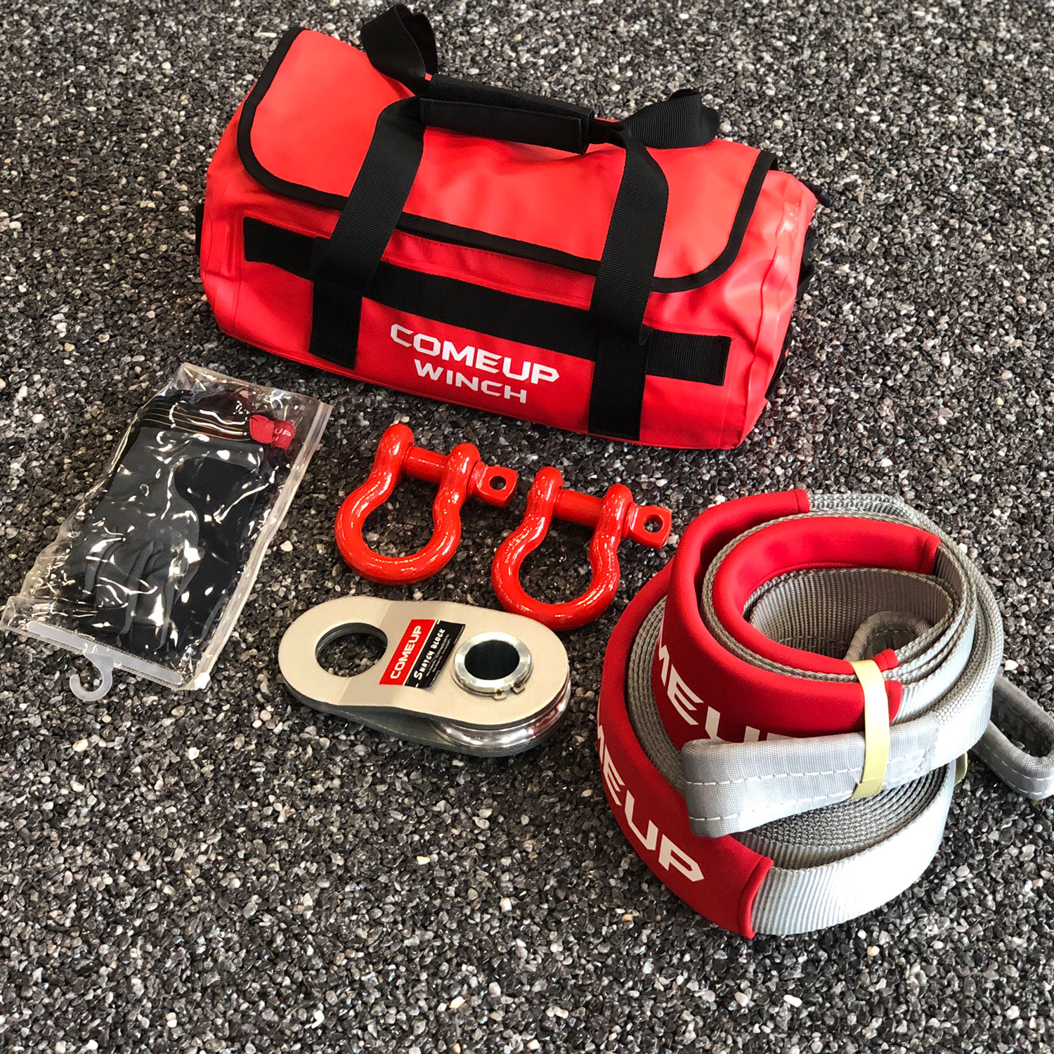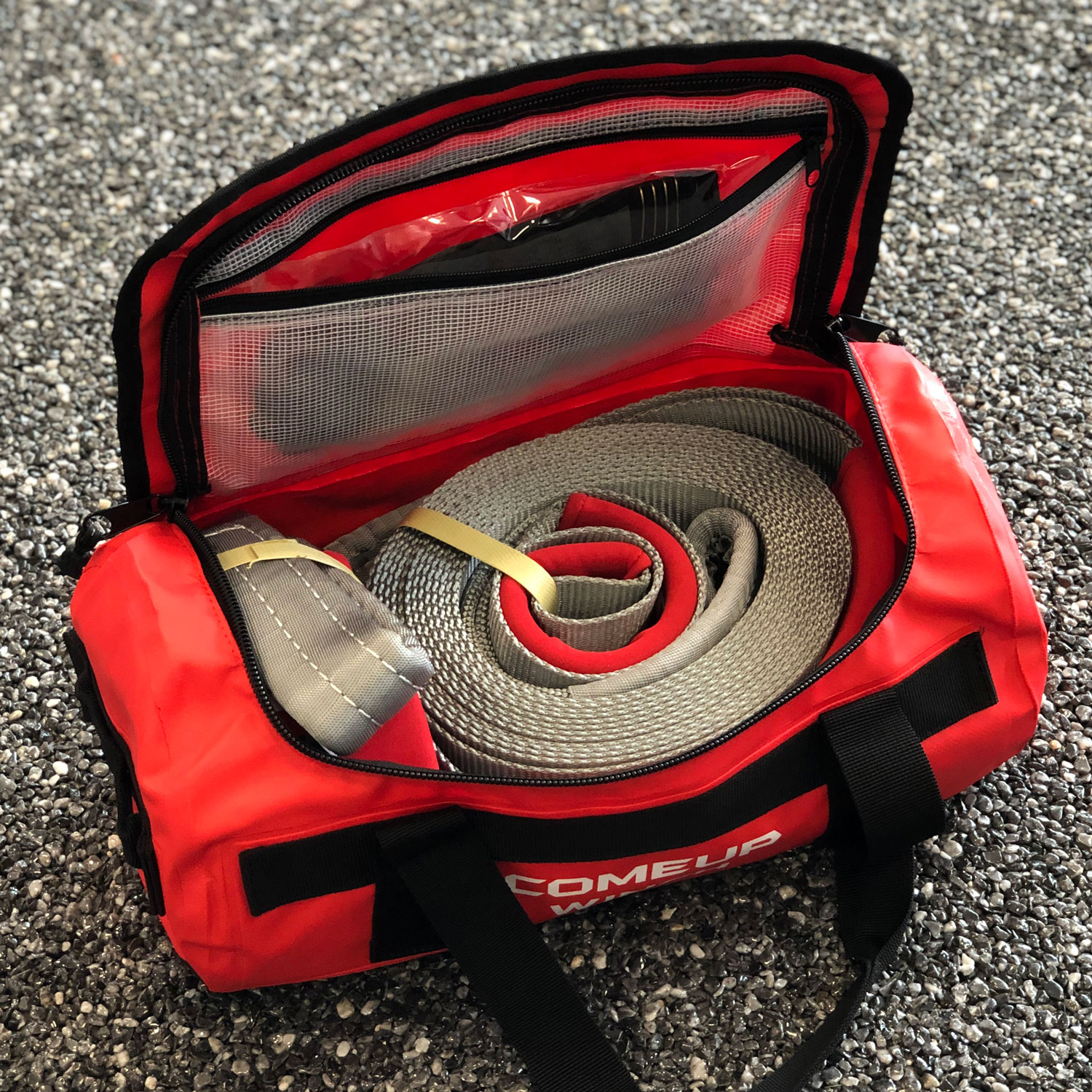 En komplett bag med det meste du trenger dersom du må frem med vinsjen. Denne bag’en innholder kastebokk, hansker, sjakler, stropper – alt i en oppdatert og kraftig PVC-bag.