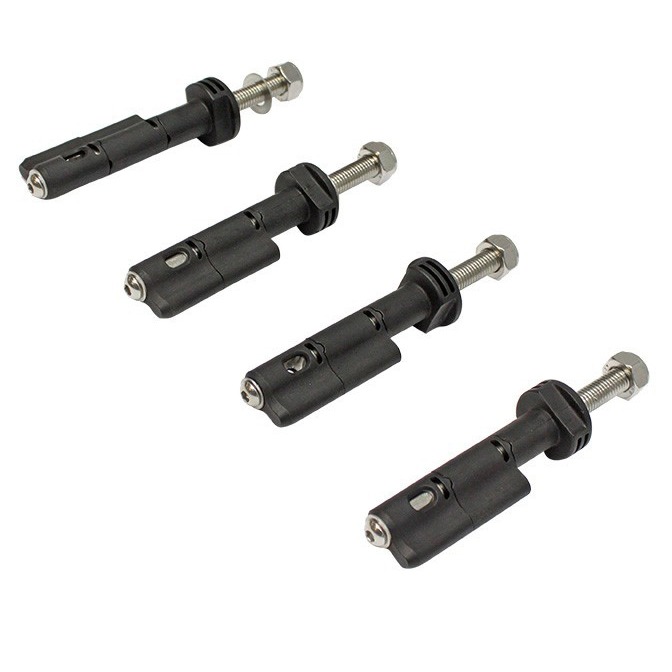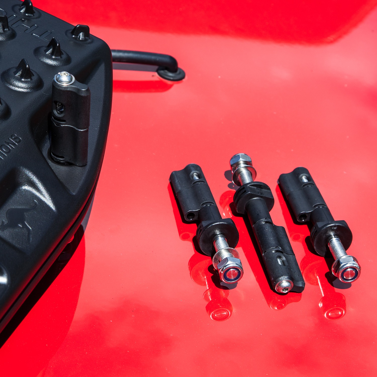 Med disse originale Maxtrax festene monterer du enkelt kjørebroene på et takrack. Stable broene på hverandre og legg dem på disse fire festene som passer med fire små hull i hvert hjørne av kjørebroene. Så låser du enkelt fast ved å vri om slik at de ikke faller av.
