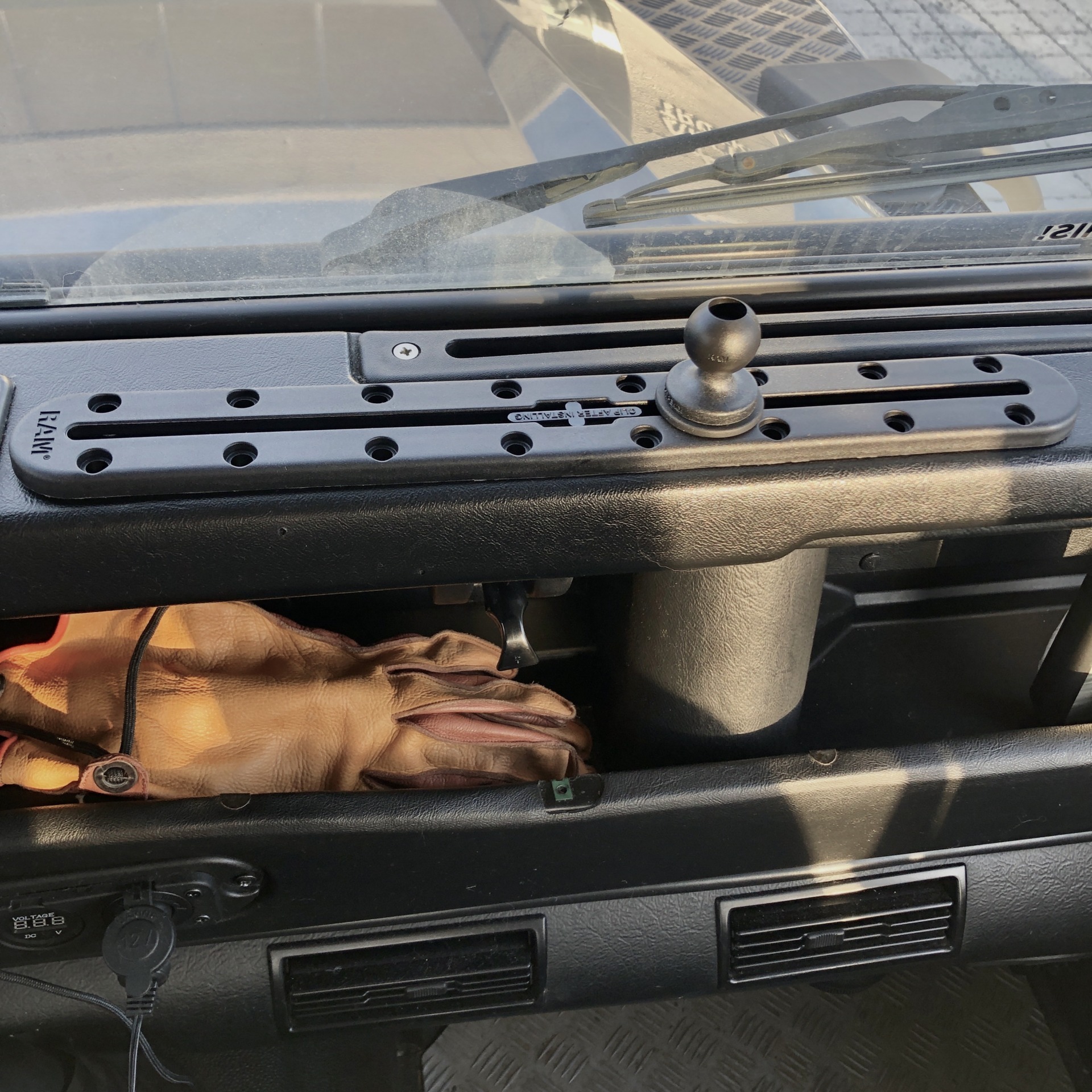 Universalskinne fra RAM Mounts for montering av flere enheter. Skru denne fast og sett inn flere RAM-kulefester.